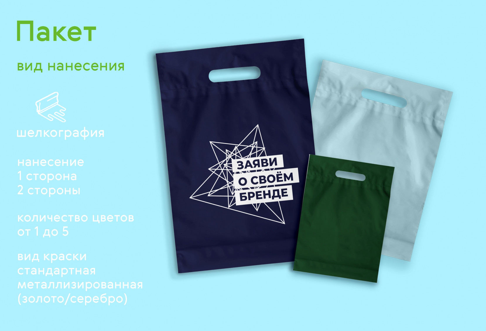 Метод нанесения: шелкография (плоский стол, объемные изделия)